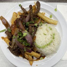Came here on a whim and will absolutely be back! Place is a little small but well spaced with tables and clean. Our server was so friendly, quick, and helpful with the few questions we had. The food was delightful! My husband got the Lomo Saltado. Although I'm not a big beef eater, this might have been one of the best beef dishes I've ever had. It was seasoned to perfection (a hair salty, but I like it like that) and the gravy that it was sitting in made both of us clean the plate with the bread that's given at the start. That bread came warm and crusty. I got the Pescado Saltado, also generously seasoned. The smaller bits of fish were a bit overcooked but the taste of everything made it completely worth it. Regrettably, it didn't have as much mouth-watering gravy as was with the beef but I just stole from my husbands plate. Both drinks were fantastic. TheChica Morada had a good bit of cinnamon (?) so it was a delicious mixture of spiced and sweet. The Maracuya was refreshing! I saw the menu offered a vegetarian Saltado and I can't wait to go back to try!